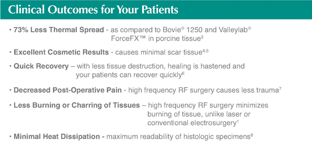 5、無炭化-射頻手術設備更小化燒傷組織,不像激光及傳統電外科設備。
