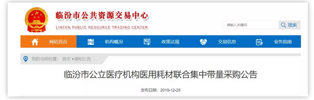 昨日(12月25日),山西省臨汾市公共資源交易中心發(fā)布《臨汾市公立醫(yī)療機(jī)構(gòu)醫(yī)用耗材聯(lián)合集中帶量采購公告》(下稱《公告》)。