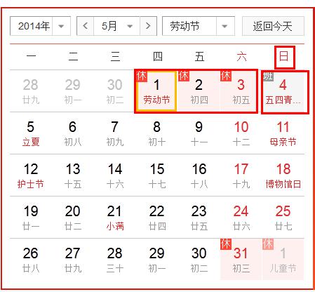 根據(jù)《國(guó)務(wù)院辦公廳關(guān)于2014年部分節(jié)假日安排的通知》,現(xiàn)將公司2014年五一放假的有關(guān)事宜通知如下: