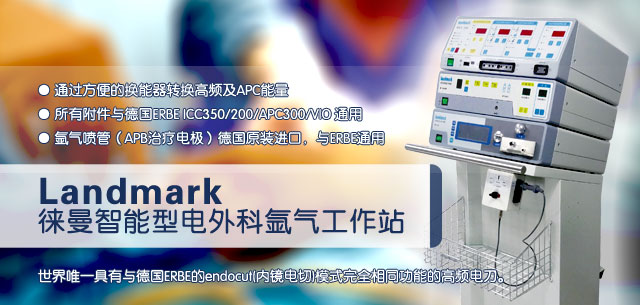 世界唯一具有與德國ERBE的endocut(內鏡電切)模式完全相同功能的高頻電刀:通過方便的換能器轉換高頻及APC能量; 所有附件與德國ERBE ICC350/200/APC300/VIO 通用; 氬氣噴管(APB治療電極)德國原裝進口,與ERBE通用。
