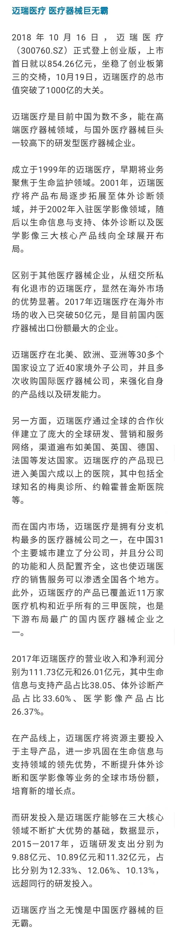 2018年最賺錢的械企!除了邁瑞 還有這兩家
