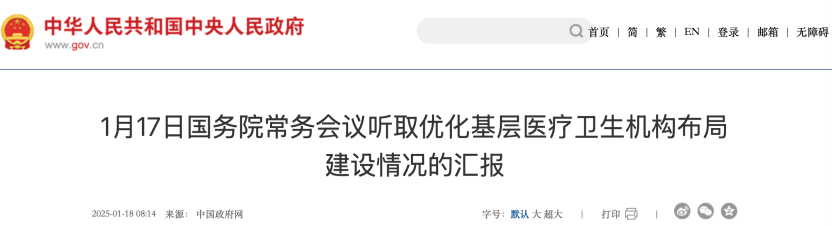 1月17日,國務(wù)院常務(wù)會(huì)議聽取優(yōu)化基層醫(yī)療衛(wèi)生機(jī)構(gòu)布局建設(shè)情況的匯報(bào)。
