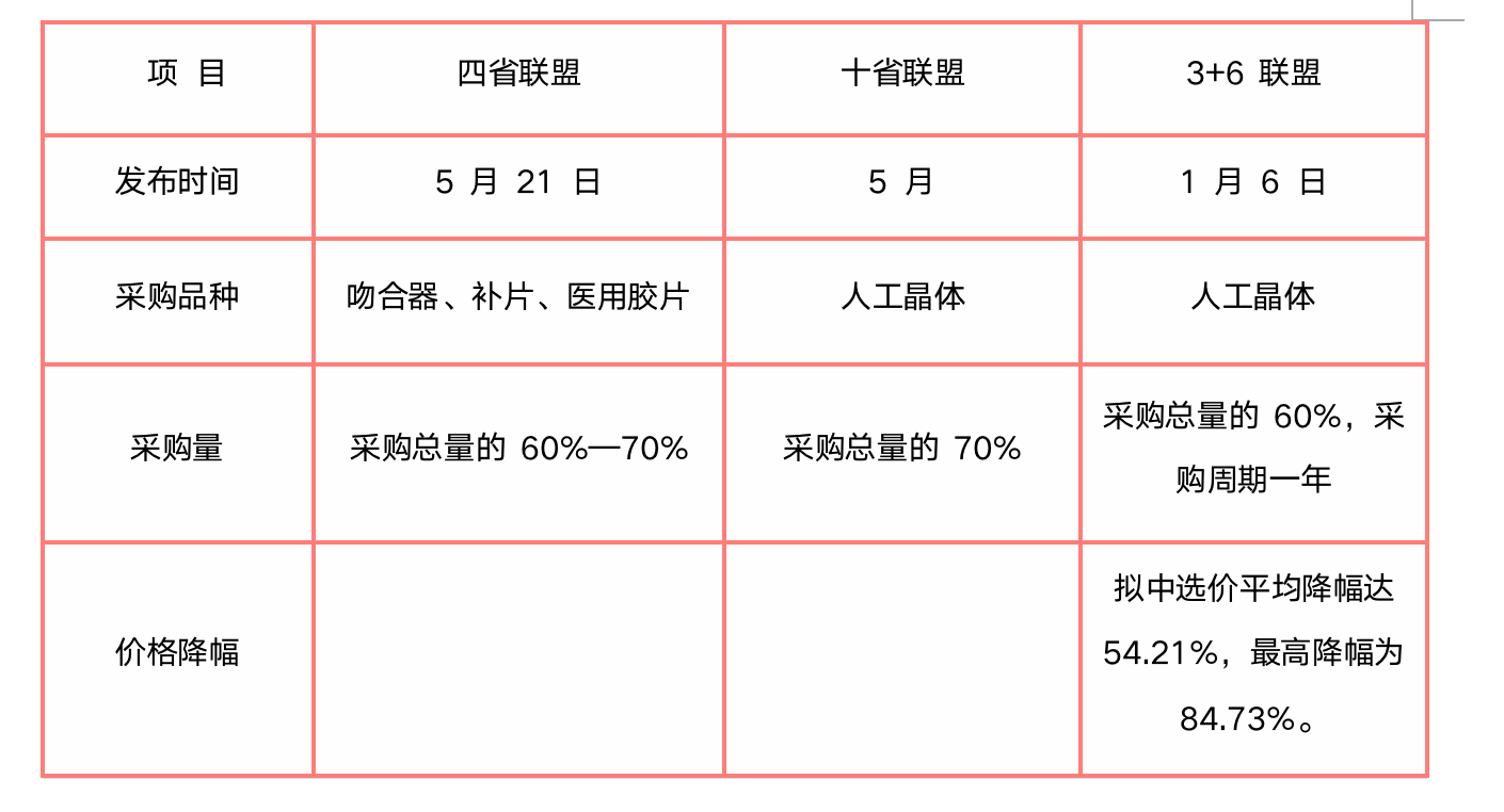 但2020年上半年的采購品種人工晶體由配角上升為主角十省聯盟和3+6聯盟都選擇人工晶體,進行集中帶量采購。