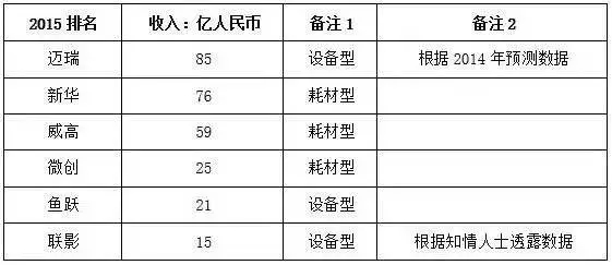 國(guó)內(nèi)醫(yī)療器械企業(yè)六大巨頭在2015年的排名狀況,“三耗材”、“三設(shè)備”互拼