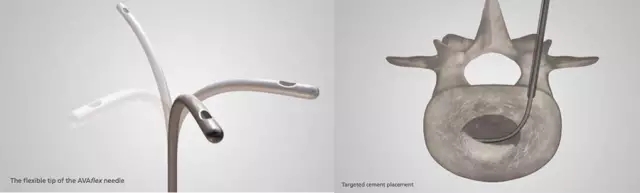 AVAflex導(dǎo)針由超彈性復(fù)合材料-鎳鈦諾記憶合金制成。鎳鈦諾的超彈特性允許AVAflex導(dǎo)管任意彎曲并放置到普通直線型導(dǎo)管無(wú)法到達(dá)的區(qū)域(椎體中線或椎體對(duì)側(cè)),靈活推注骨水泥,解決復(fù)雜骨折難題。
