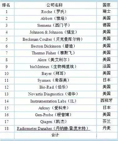 而有數(shù)據(jù)顯示:國(guó)內(nèi)體外診斷產(chǎn)品市場(chǎng)一直為國(guó)外幾家大的跨國(guó)公司所牢牢占據(jù),羅氏(Roche)、雅培(Abbott)等5家國(guó)際行業(yè)巨頭目前占據(jù)37%多的國(guó)內(nèi)體外診斷試劑市場(chǎng)份額。而國(guó)產(chǎn)體外診斷產(chǎn)品品牌卻處于相對(duì)弱勢(shì)地位,不但在國(guó)際市場(chǎng)上知名度和認(rèn)可度低,就是在國(guó)內(nèi)三甲醫(yī)院的采購(gòu)單上也難覓蹤跡。