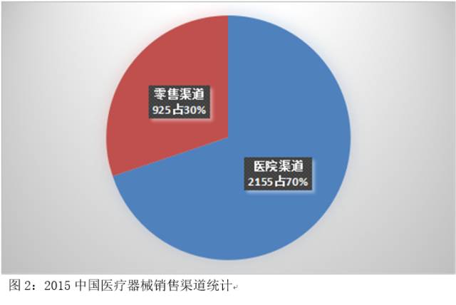 2015年我國醫療器械約為3080億元的市場銷售規模中,醫院市場約為2155億元,約占70%;零售市場銷售約為925億元,約占30%。