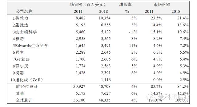 由于通用電氣和飛利浦不公布其心血管領域的銷售數據,所以沒有將他們考慮進去。