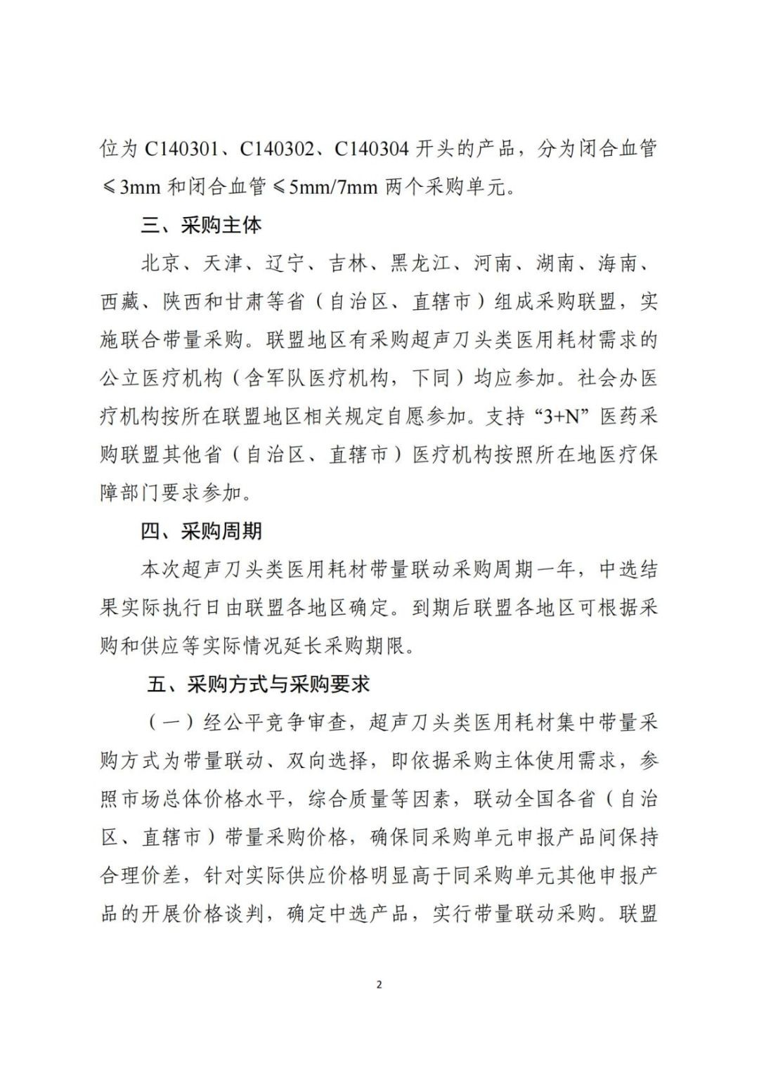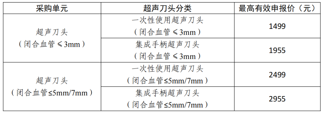 填報品種:獲得國內有效注冊證的超聲刀頭類醫用耗材,范圍為國家醫保局醫保醫用耗材編碼前7位為C140301、C140302、C140304開頭的產品,分為閉合血管<3mm 和閉合血管<5mm/7mm 兩個采購單元。