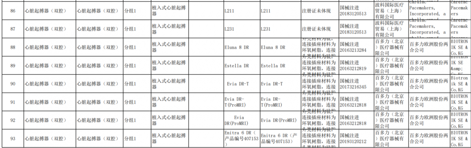 心臟起搏器(雙腔)5家企業(yè)的5個(gè)產(chǎn)品平均降價(jià)51.86%。