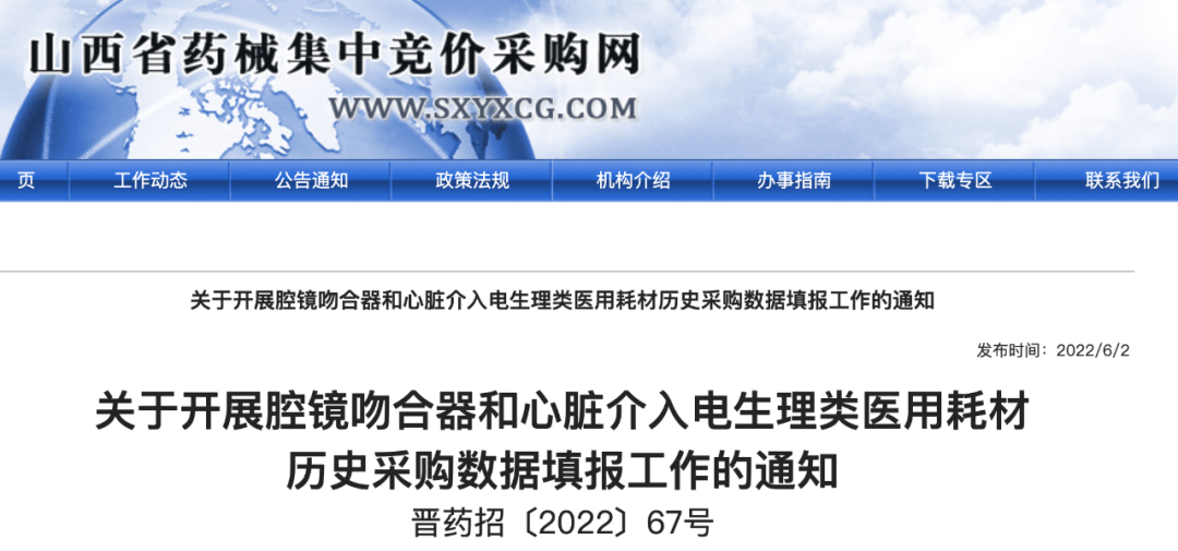 近日,山西省藥械集中招標采購中心、西藏自治區醫保局先后發布通知,要求開展腔鏡吻合器和心臟介入電生理類醫用耗材歷史采購數據填報工作。
