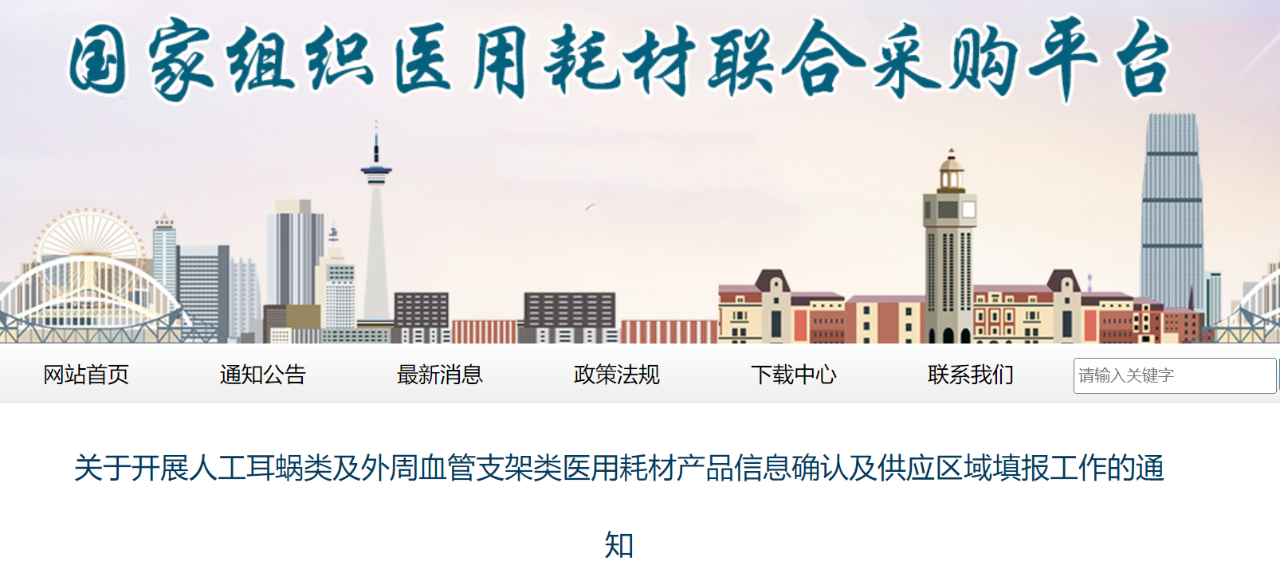 10月28日,國家組織高值醫用耗材聯合采購辦公室發布《關于開展人工耳蝸類及外周血管支架類醫用耗材產品信息確認及供應區域填報工作的通知》。