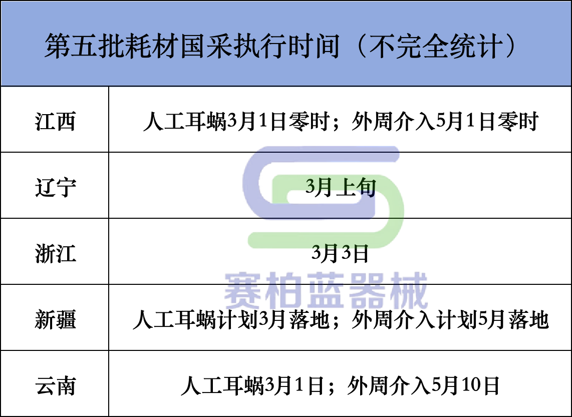 截至目前,江西、遼寧、浙江、新疆、云南等地已披露落地執(zhí)行第五批耗材國(guó)采的具體時(shí)間,具體地區(qū)預(yù)計(jì)也將快速跟進(jìn)。