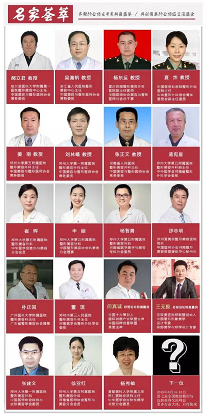 應(yīng)邀出席此次大會(huì)的不僅有眾多國(guó)內(nèi)知名教授,還有來自國(guó)外的頂級(jí)專家。本次會(huì)議將從不同角度、不同層面展現(xiàn)國(guó)內(nèi)外美容、整形方面的新技術(shù)、新進(jìn)展,同時(shí)會(huì)議還將分別就激光美容、運(yùn)營(yíng)管理、咨詢營(yíng)銷等方面進(jìn)行全面、深入的交流和研討。為醫(yī)美界廣大醫(yī)師和同行提供了良好的學(xué)習(xí)交流和溝通的平臺(tái)。