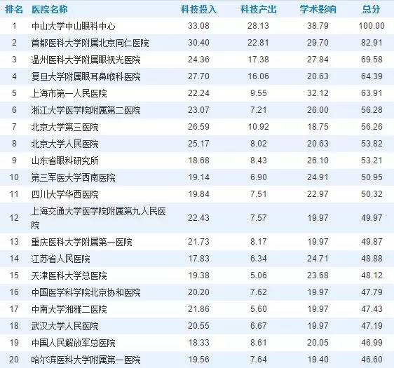 2015年度中國醫院科技影響力——主要學科排行榜發布