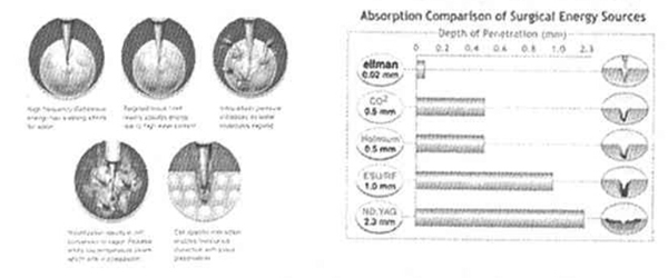 4)組織內水分含量:ellman射頻手術效果與組織內水分含量成正比。組織含水的程度直接影響手術效果和其它影響手術效果的因素。含水多的組織在接收射頻能量后汽化程度高,組織比較容易受損傷,對這些組織我們就要降低輸出能量的設置。在實施眼瞼等精細部位的手術時,我們要盡量減少使用麻醉劑,盡量減少水的含量,以防止組織損傷。
