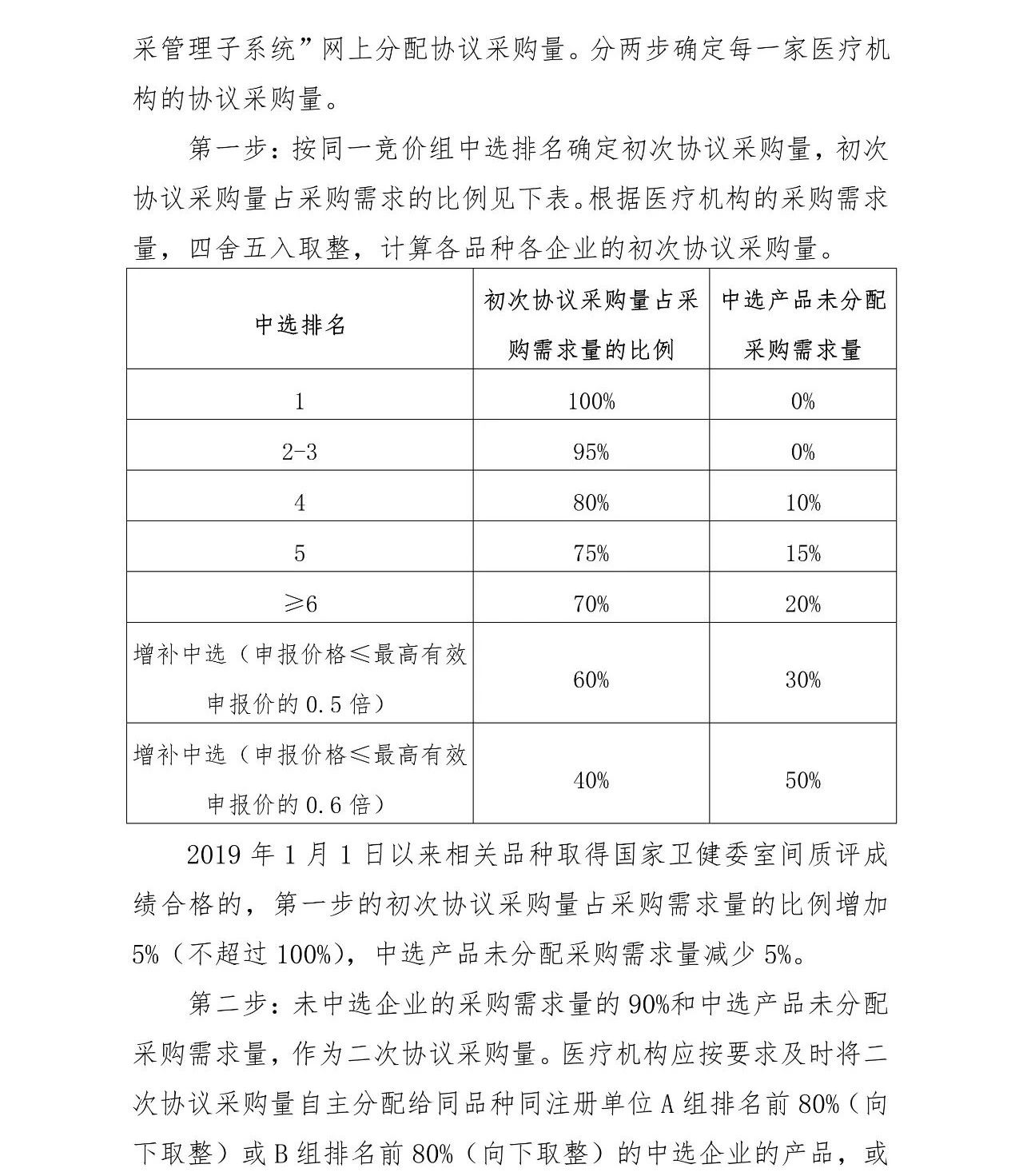 本次聯盟集采按同一競價組中選排名確定初次協議采購量,初次協議采購量占采購需求的比例如下: