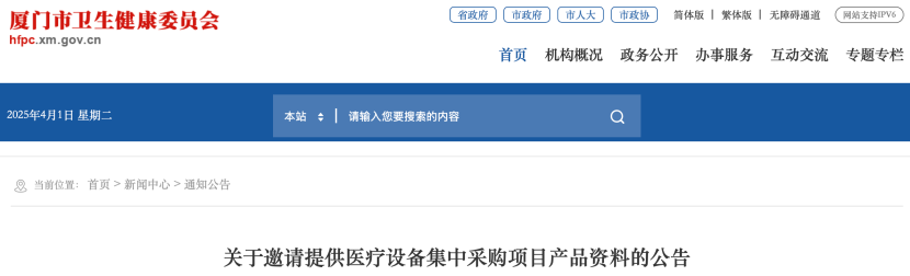 根據(jù)相關(guān)規(guī)定,各需求醫(yī)院已將采購(gòu)需求調(diào)研公告在其官網(wǎng)掛網(wǎng)公示。并邀請(qǐng)有意向參加醫(yī)療設(shè)備集中采購(gòu)的供應(yīng)商按照各需求醫(yī)院要求提供相應(yīng)材料。