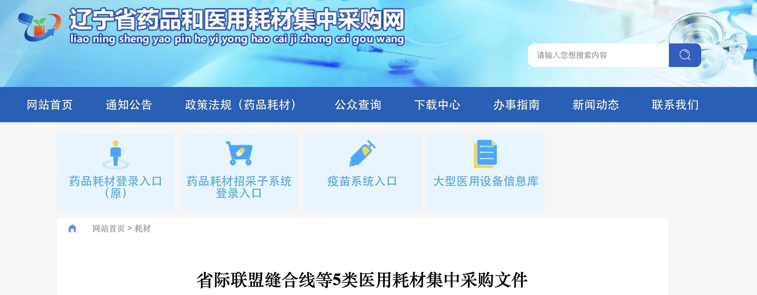 近日,遼寧省藥品及醫(yī)用耗材集中采購(gòu)網(wǎng)發(fā)布《省際聯(lián)盟縫合線等5類(lèi)醫(yī)用耗材集中采購(gòu)文件》。