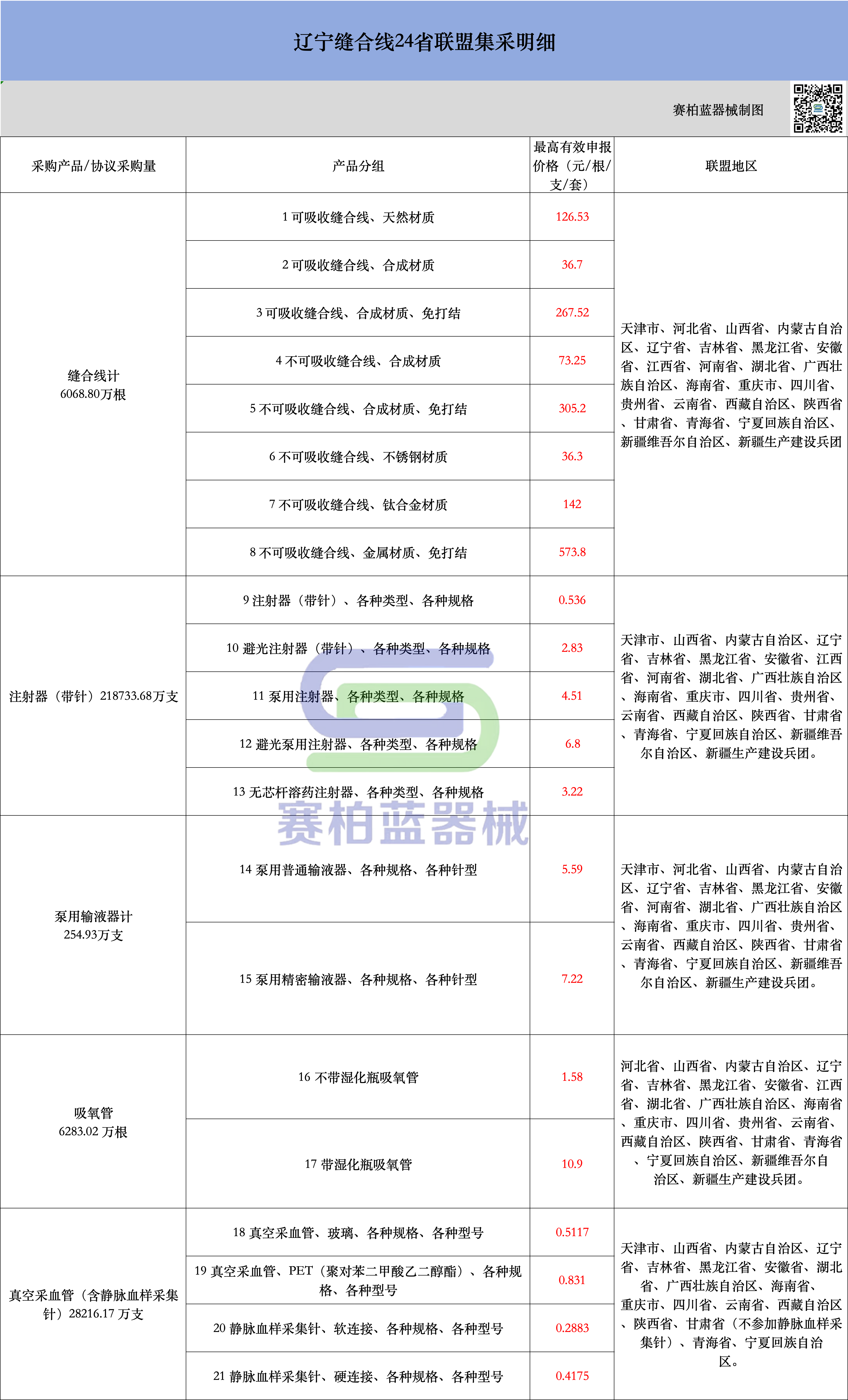 此次集采由遼寧牽頭,天津、河北、山西、內(nèi)蒙古、吉林、黑龍江、安徽、江西、河南、湖北、廣西、海南、重慶、四川、貴州、云南、西藏、陜西、甘肅、青海、寧夏、新疆、新疆生產(chǎn)建設(shè)兵團(tuán)組成24省(市、區(qū)、兵團(tuán))采購(gòu)聯(lián)盟。采購(gòu)周期為3年。