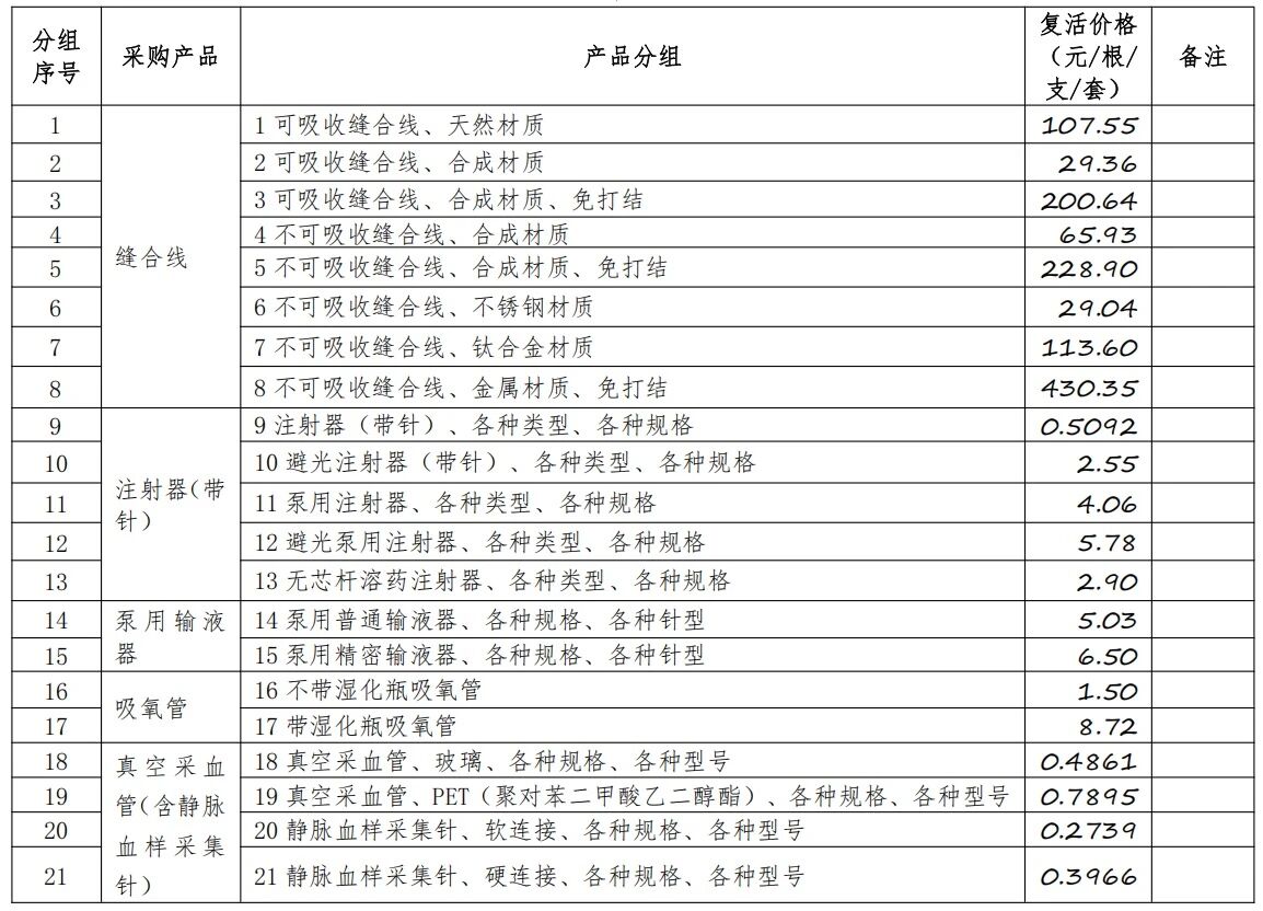 上文提到調(diào)整最高限價(jià)的兩類(lèi)產(chǎn)品,其對(duì)應(yīng)的復(fù)活價(jià)格也進(jìn)行了調(diào)整。“可吸收縫合線、天然材質(zhì)”的從73.83元調(diào)至107.55元;“不可吸收縫合線、合成材質(zhì)”從40.73元調(diào)至65.93元。