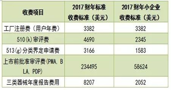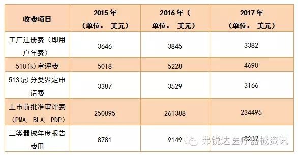 對比前兩年FDA的收費,即將到來的2017年收費有所下降:
