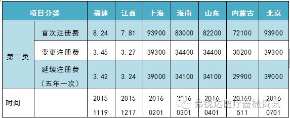隨著《關于印發〈藥品、醫療器械產品注冊收費標準管理辦法〉的通知》的落實,目前國內已有7個省市出臺了境內第二類醫療器械產品注冊收費標準: