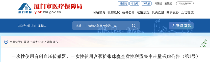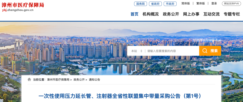 8月18日-8月19日,福建漳州、廈門醫保局分別發布《一次性使用壓力延長管、注射器全省性聯盟集中帶量采購公告(第1號)》《一次性使用有創血壓傳感器、一次性使用宮頸擴張球囊全省性聯盟集中帶量采購公告(第1號)》。