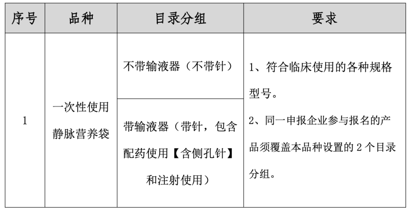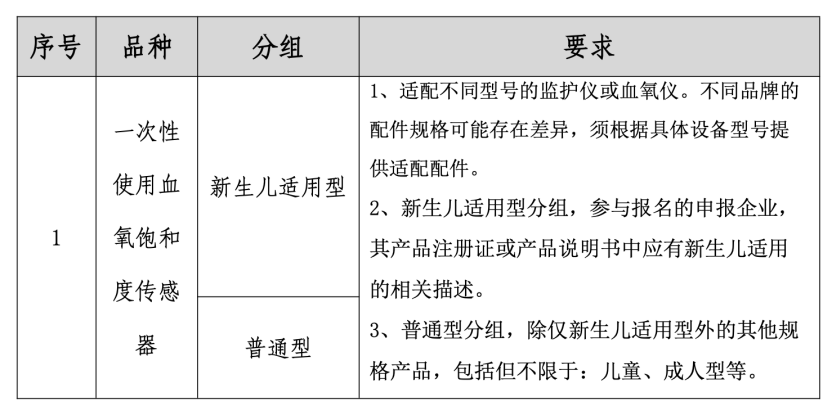 一次性使用靜脈營養袋、一次性使用血氧飽和度傳感器的采購品種及具體要求如下(尚在征求意見階段):