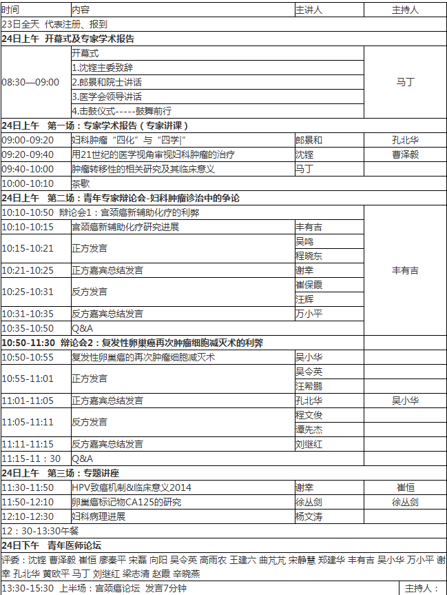 2014 年5月23日全天報到,5 月24-25日開會,25日下午撤離。