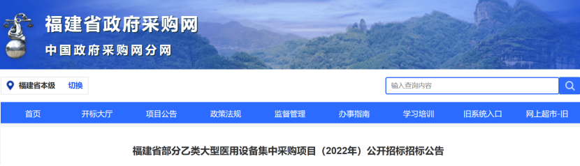 近日,福建政府采購網(wǎng)發(fā)布《福建省部分乙類大型醫(yī)用設(shè)備集中采購項(xiàng)目(2022年)公開招標(biāo)招標(biāo)公告》(以下簡(jiǎn)稱《公告》)。