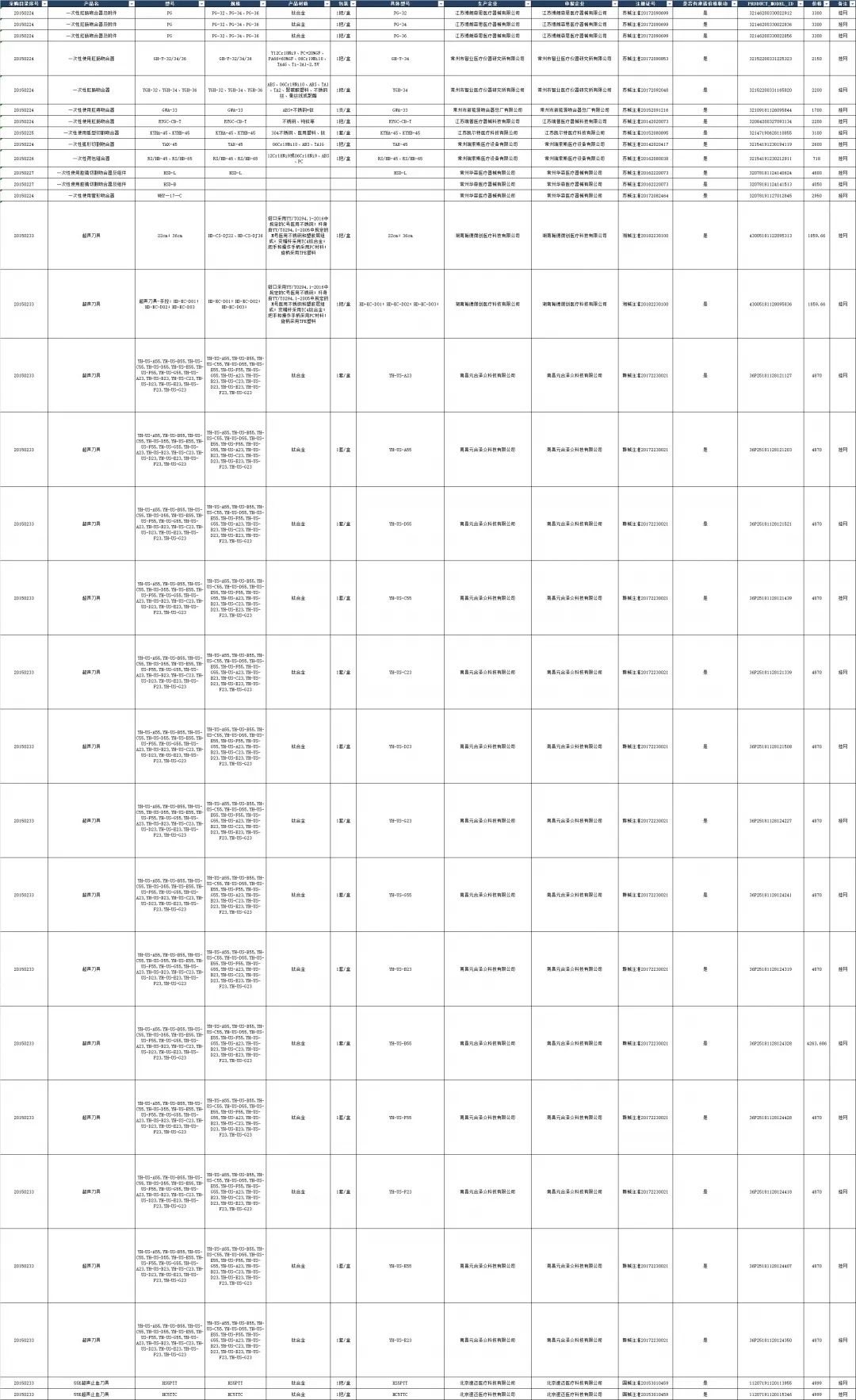 從公布的表格中可以看出,山東省第二批高值耗材集中采購掛網價格聯動的產品共有290個,產品種類包括一次性醫用耗材及附件、血管介入類耗材、非血管介入類耗材、超聲刀具等40種,涉及奧林巴斯等26家生產企業。