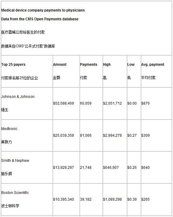 美國醫保:醫療儀器公司去年給醫生支付了2億美元