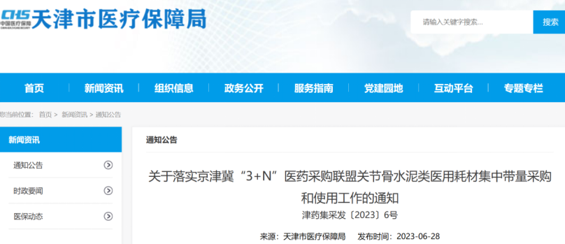 6月28日,天津市醫(yī)保局發(fā)布《關(guān)于落實(shí)京津冀“3+N”醫(yī)藥采購(gòu)聯(lián)盟關(guān)節(jié)骨水泥類醫(yī)用耗材集中帶量采購(gòu)和使用工作的通知》(以下簡(jiǎn)稱《通知》),其中明確,天津?qū)⒂?月1日起執(zhí)行京津冀“3+N”醫(yī)藥采購(gòu)聯(lián)盟關(guān)節(jié)骨水泥類醫(yī)用耗材集中帶量采購(gòu)中選結(jié)果。