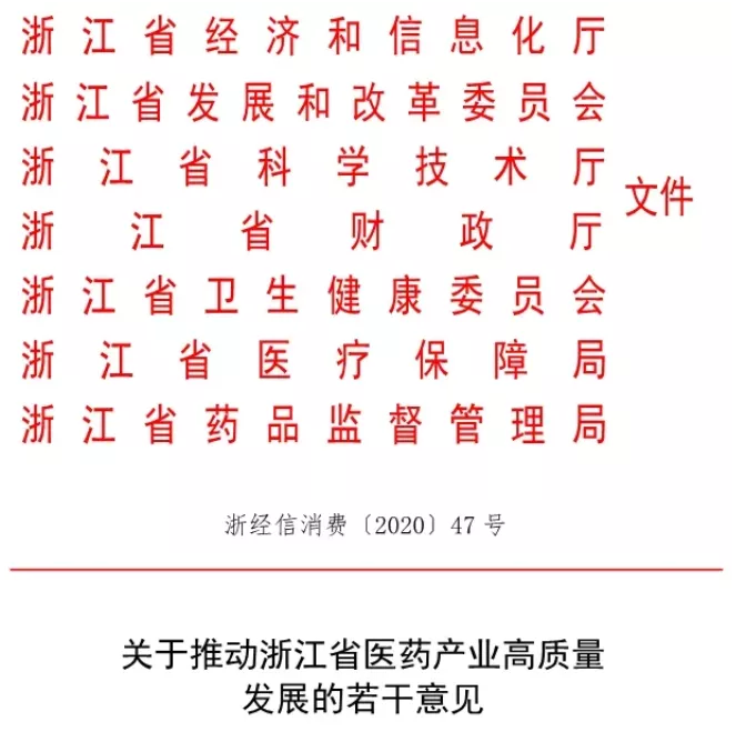 近日,浙江省發展改革委、省經信廳、省科技廳、省財政廳、省衛生健康委、省醫保局、省藥監局共同印發《關于推動浙江省醫藥產業高質量發展的若干意見》(下稱《意見》)。