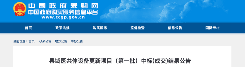 近日,中國政府采購網公布新疆衛健委縣域醫共體設備更新項目第一批、第二批中標結果。