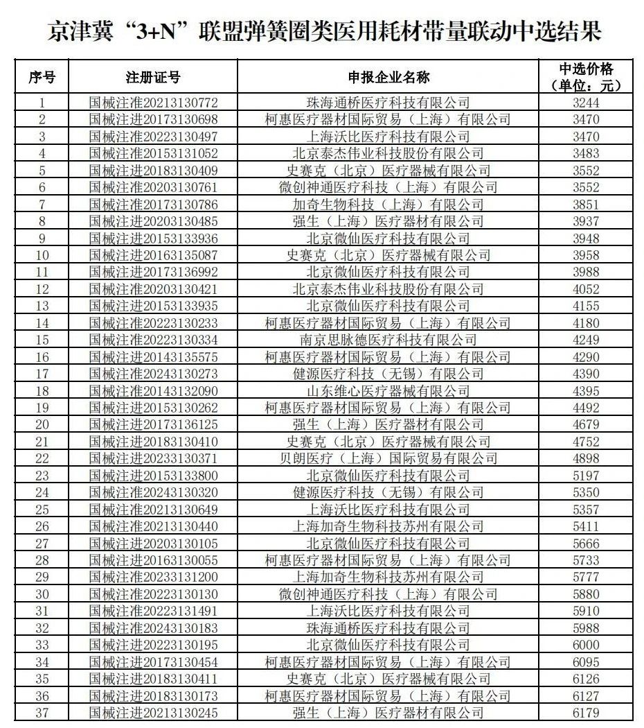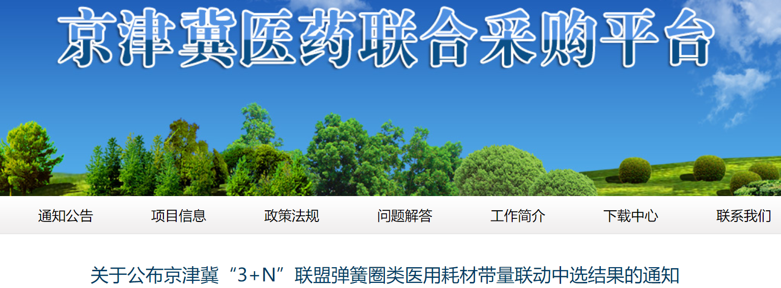 3月29日,京津冀醫(yī)藥聯(lián)合采購平臺(tái)發(fā)布《關(guān)于公布京津冀“3+N”聯(lián)盟彈簧圈類醫(yī)用耗材帶量聯(lián)動(dòng)中選結(jié)果的通知》。