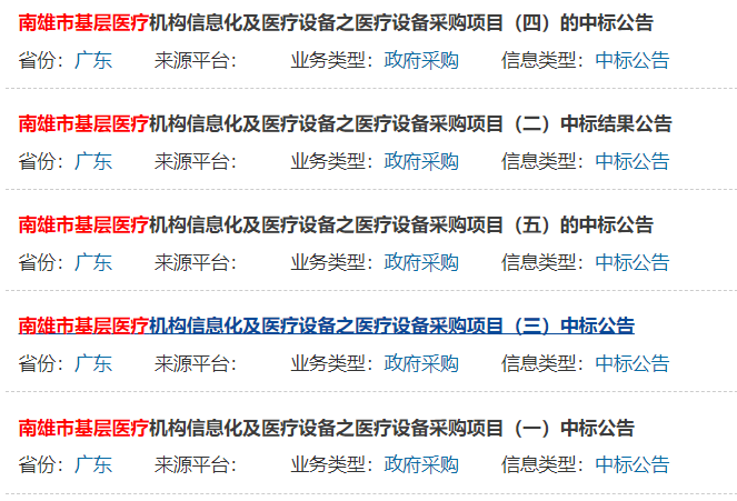 據中國政府采購網了解,廣東省南雄市衛生健康局發布了一則招標公告,總預算近4000萬為南雄市基層醫療機構采購一批醫療設備。