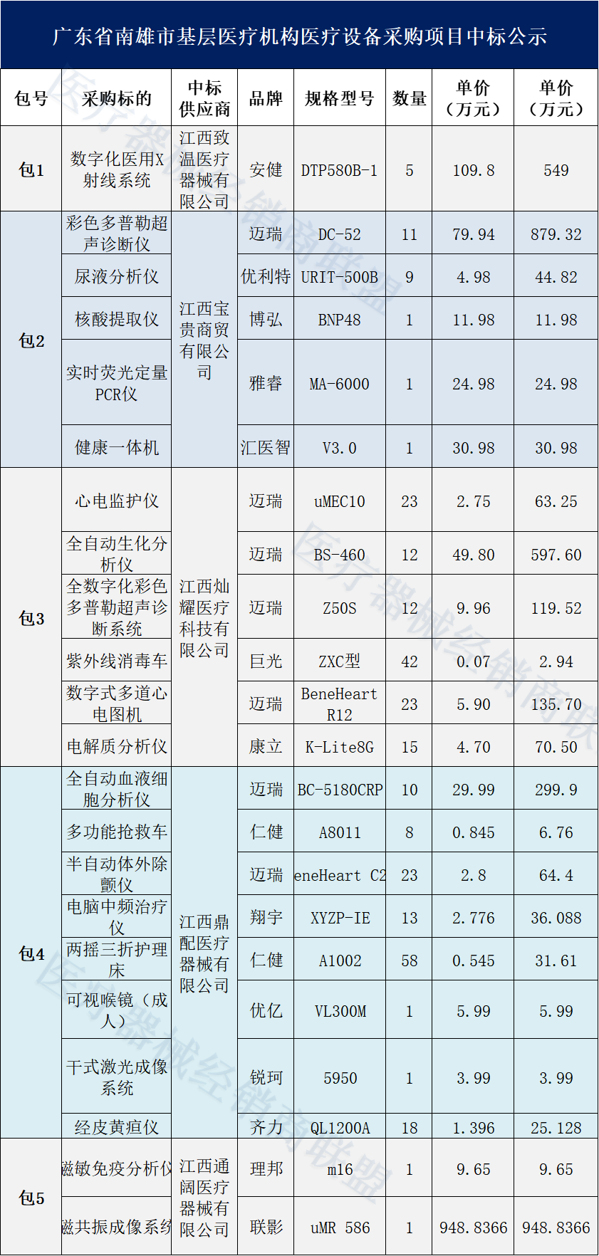 近期,又一地大批醫療器械采購塵埃落定,所有中標產品均為國產,邁瑞、安健、理邦、聯影......