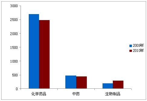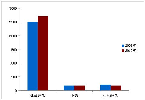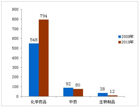 與2009年相比,2010年批準進入臨床研究的化學藥品和生物制品均有所增加,批準進入臨床研究的藥物總數也有所增加。