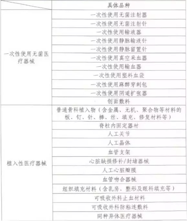 其中,無菌、植入性器械的具體檢查品種目錄如下: