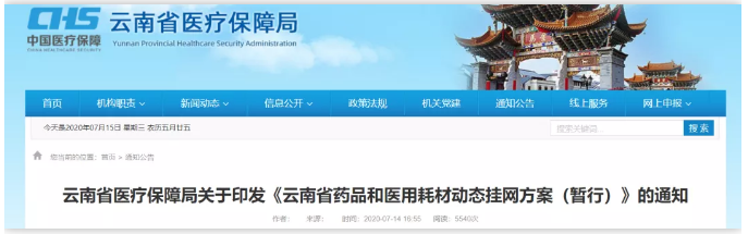 7月14日,云南省醫(yī)療保障局印發(fā)《云南省藥品和醫(yī)用耗材動(dòng)態(tài)掛網(wǎng)方案(暫行)》(下稱《暫行方案》),明確要求將執(zhí)行國(guó)家耗材帶量采購(gòu)價(jià)格。