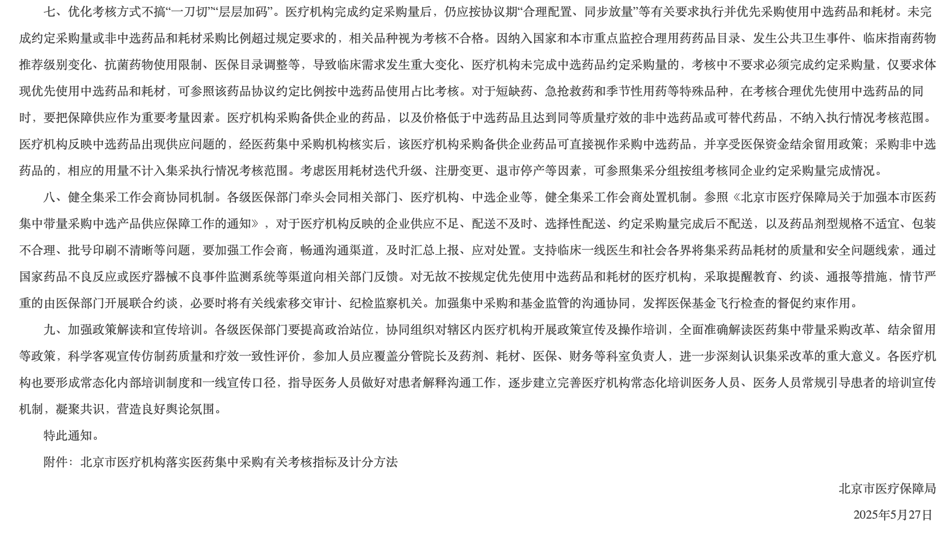 近日,北京醫保局發布《北京市醫療保障局關于完善醫藥集中帶量采購和執行工作機制的通知》(以下簡稱《通知》)(附文末)。