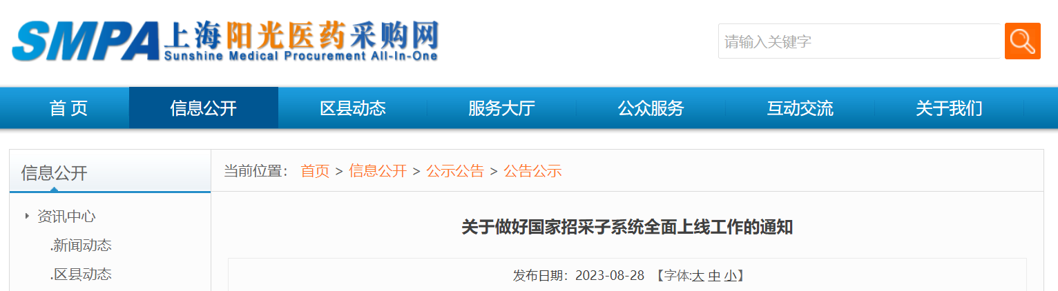 8月28日,上海市陽光醫(yī)藥采購網發(fā)布了《關于做好國家招采子系統(tǒng)全面上線工作的通知》,國家醫(yī)保信息平臺藥品和醫(yī)用耗材招采管理子系統(tǒng)(簡稱“招采子系統(tǒng)”)將于2023年9月11日全面上線應用,原陽光平臺采購功能停止使用。