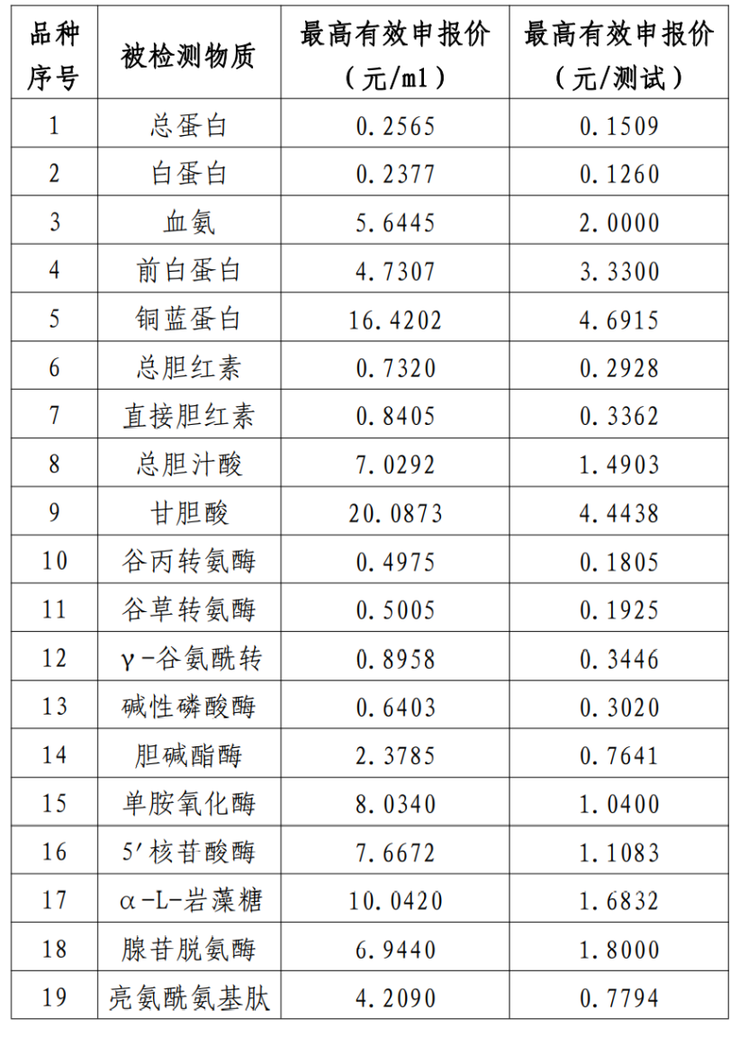 11月29日,江西醫保局發布《肝功生化類檢測試劑省際聯盟集中帶量采購公告(第2號)》,公布最高有效申報價和采購需求量。