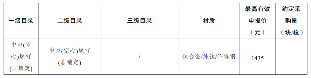 采購品種:鎖定加壓接骨板系統、普通接骨板系統、髓內釘系統、單獨使用的螺釘等骨科創傷類產品,以及部分5mm集成超聲刀頭。
