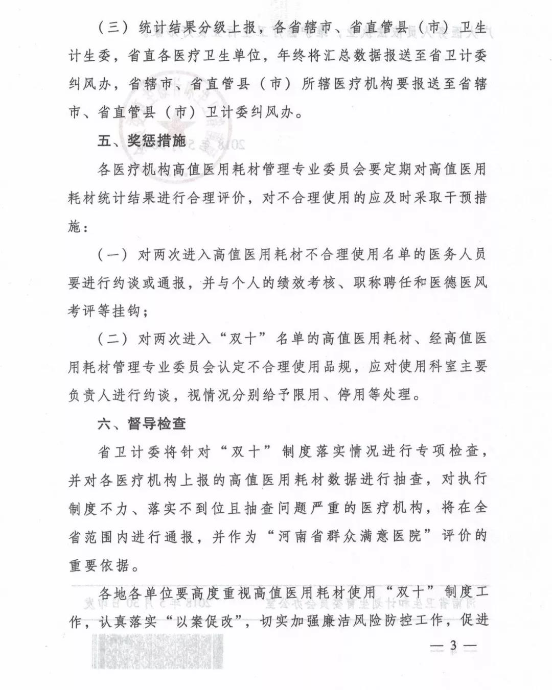 尤其是獎懲措施這一項,一字不差。對兩次進入不合理使用名單的醫務人員要進行約談或通報,并與個人的績效考核、職稱聘任和醫德醫風考評等掛鉤。而對兩次進入 “雙十”名單的高值醫用耗材、經認定為不合理使用的,要對使用科室主要負責人進行約談,視情況分別給予限用、停用等處理措施。