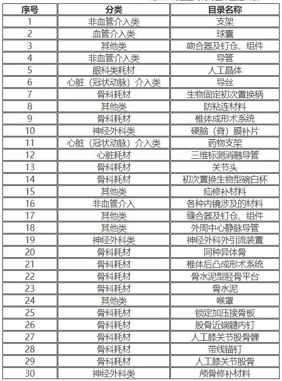 2018年7月,原南陽市衛計委發布《關于進一步加強醫療機構高值醫用耗材重點監控工作的通知》(下稱《監控通知》),公布高值醫用耗材重點監控目錄,具體如下: