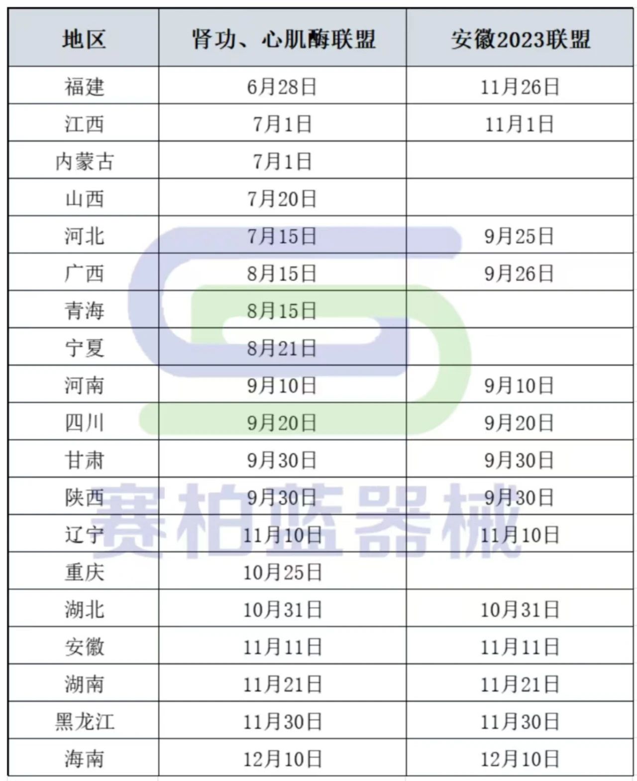 截至目前,全國多地已明確上述聯盟集采的執行時間,其中肝功生化集采已全面落地完成,腎功心肌酶聯盟與安徽2023聯盟集采的進度如下: