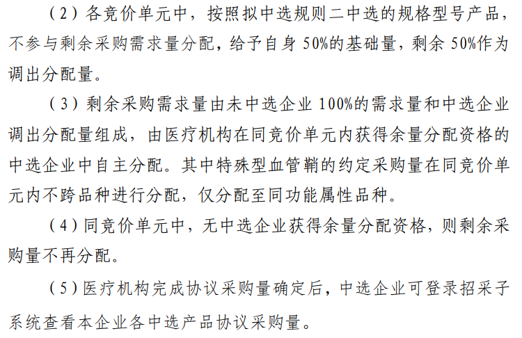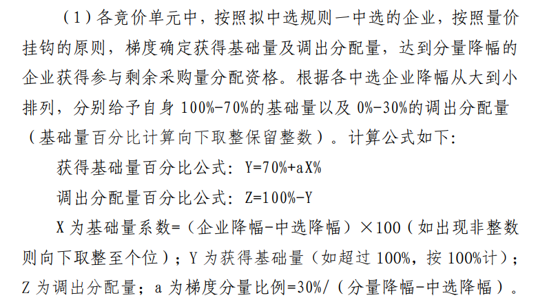 本次集采設(shè)置了兩檔降幅。企業(yè)降幅達(dá)到中選降幅的,獲得擬中選資格;企業(yè)降幅達(dá)分量降幅的,獲得參與剩余采購量分配資格。